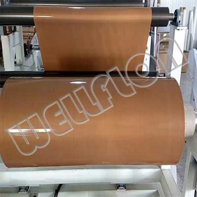 WellFlon® ptfe fabric use imported glass fiber as the material to make plain, twill, satin or other weaves into high-grade fiberglass cloth substrate, and then fully impregnated with unique process technology, coated with high-quality PTFE (Teflon®) resin to produce PTFE high temperature fabric with multiple thicknesses and widths. Fiberglass fabrics endow the product with excellent mechanical strength and dimensional stability; PTFE coating makes the product utterly impermeable to liquids and has strong chemical resistance to various acidic and alkaline liquids. The optional smoothness of the surface allows it to be used as an anti-stick product with excellent repellency to any substances and materials. PTFE Fabric has excellent high-temperature resistance and can work continuously at a temperature of 260°C without any change.